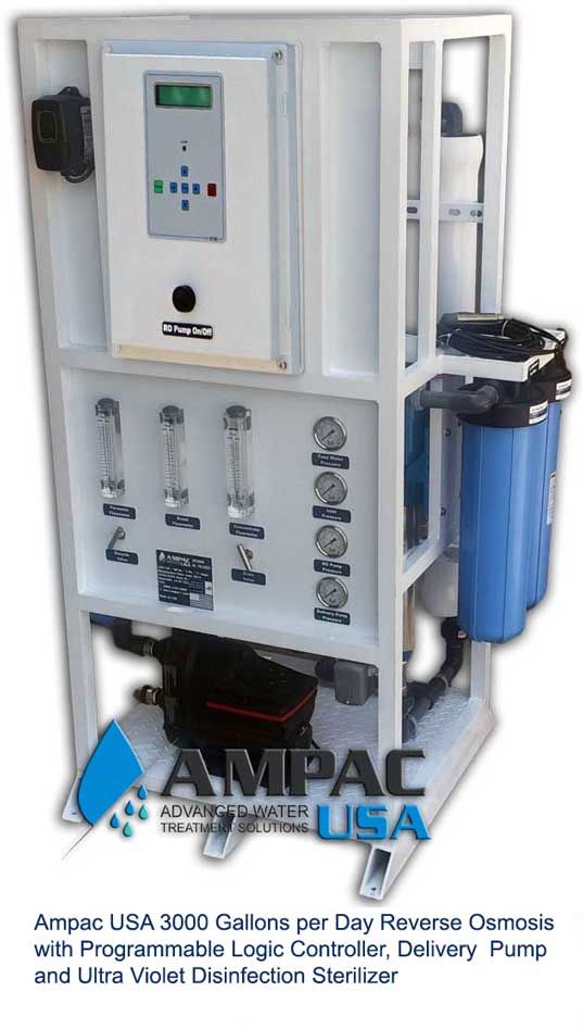 The AMPAC USA Commercial Reverse Osmosis 3000 GPD | APRO3000 Water Purifier is the result of 28 years experience with the needs and requirements of commercial pure water users. The key factors are reliability, serviceability, and consistent performance with minimum user intervention are achieved in the solid design of the Ampac USA Reverse Osmosis Systems.