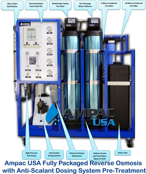 The AMPAC USA Fully Equipped LX Series Commercial Reverse Osmosis Turnkey Brackish Water 2200 GPD is the result of 28 years of experience with the needs and requirements of commercial pure water consumers with brackish and well water.