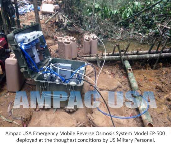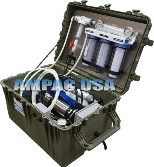 The AMPAC USA™ Emergency Portable Reverse Osmosis 500 GPD | EP-500 is an Emergency Portable Reverse Osmosis Unit that has been specifically designed for Disaster Preparedness applications, where a large amount of pure drinking water is required at the cheapest running costs. The EP-500 will Produce up to 21 GPH (Gallons per Hour) of Pure water.