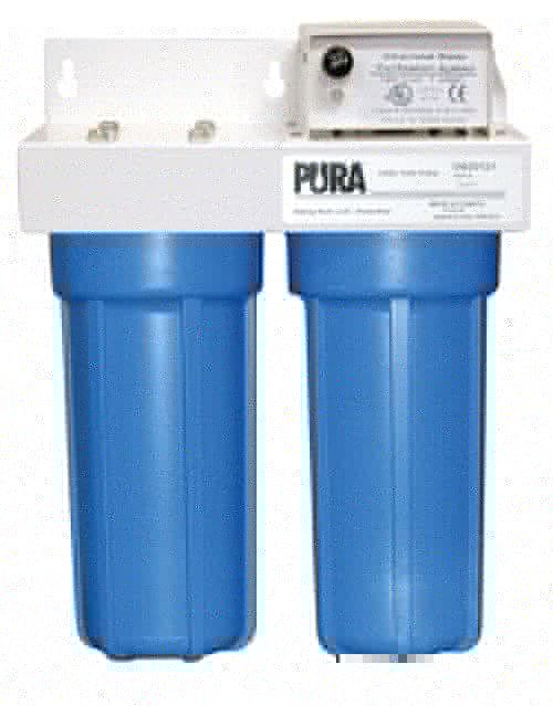 Pura Ultra Violet Disinfection System UVB2-EPCB Products patented UVB Series is designed to provide disinfected water at a flow rate of 2 gallons per minute. In addition to disinfection, water is filtered through our Double Models provide you with a 5-micron Sediment Filter and a .5 micron Extended Pass Carbon Block (EPCB) filter/UV.