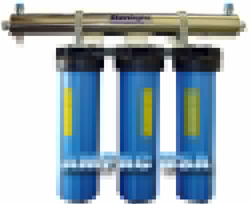 The Quad Whole House BB UV - from category Commercial Water Filters, UV-BB4-20 is the most versatile whole house water filter on the market today, with a capacity of 12 to 23 GPM. This water filter is manufactured with precision. The UV-BB4-20 Whole House Water Filter is designed to be easily installed and serviced by an average homeowner. BB4-20 Whole House Water Filter comes with 3 filter cartridges and an ultra Violet disinfection sterilizer as follows: