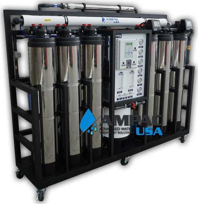 The Ampac USA Super Water Store Commercial Reverse Osmosis AP4000-SM System is a Fully Automated, Fully Equipped, Superior Quality Drinking Water Purification Reverse Osmosis System, built on an aluminum fully welded skid with an aluminum diamond plate, specifically designed for Water Store Applications.