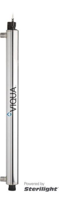 The Viqua Sterilight S8Q-PA | Ultra Violet Disinfectant System works to reduce microorganisms in your water immediately and is suitable for whole-home water treatment in the average residence. UV light reduces living contaminants in your water such as Cryptosporidium, E.-Coli, Fecal Coliform, and Giardia. During UV exposure, the DNA of the microorganisms is deactivated which makes them unable to reproduce. This treatment does not affect the taste, odor, or color of the water. The recommended flow rate for this system is 10 gallons per minute (38 lpm). Other features of this system include low-maintenance operation without the need to turn off the water in order to replace the UV lamp, the visual indicator for lamp life, audible alarm for system failure, and stainless steel chamber material construction.