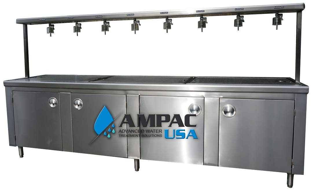 Ampac USA introduces the all-new Island Water Store Bottle Filling Station with 8 Faucets Model SS8i-BWS.
